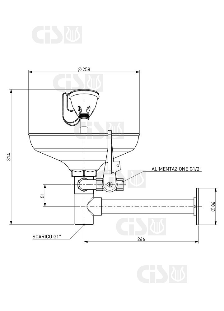 Vaschetta in ABS robusta struttura ottenuta dalla combinazione di materiale plastico unito a corpo in ottone verniciato epossidico anticorrosivo. Comando manuale con valvola a sfera ispezionabile ed estraibile, azionabile da leva quadra completa di insegna conforme alla norma. Coppa paraocchi in morbida gomma con tappo antipolvere. Spruzzo aerato e regolato tramite dispositivo integrato (secondo norma DIN EN 246).